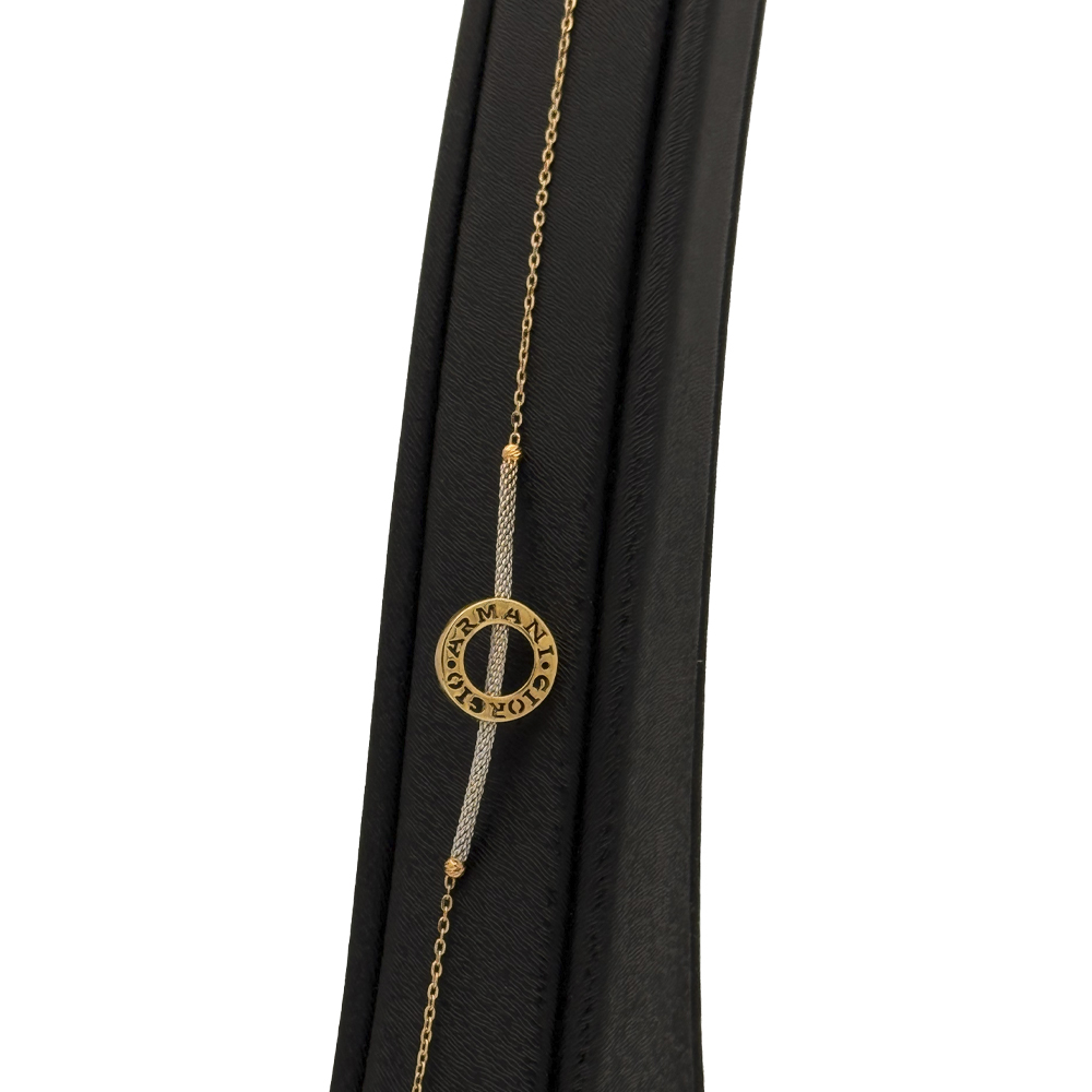 دستبند طلا ۱۸ عیار زنانه با طراحی دایرهای برند جورجیو آرمانی (Giorgio Armani) انتخابی خاص برای خانمهایی است که به دنبال زیورآلات لوکس و ظریف هستند. این دستبند طلا با زنجیر باریک و آویز دایرهای برند، استایلی مینیمال و مدرن ایجاد میکند و بهراحتی با گردنبند و گوشوارههای ست قابل ترکیب است. استفاده از طلای زرد ۱۸ عیار در طراحی این دستبند، علاوه بر زیبایی، ماندگاری و ارزش بالایی به آن میبخشد. اگر به دنبال خرید دستبند طلا برند با طراحی خاص و متفاوت هستید، دستبند زنانه آرمانی یک انتخاب ایدهآل برای شما خواهد بود.